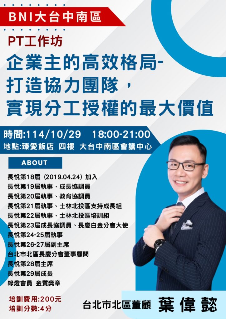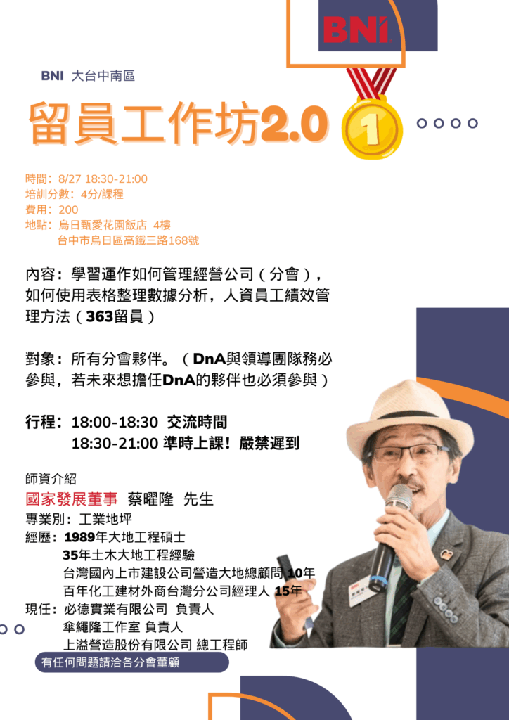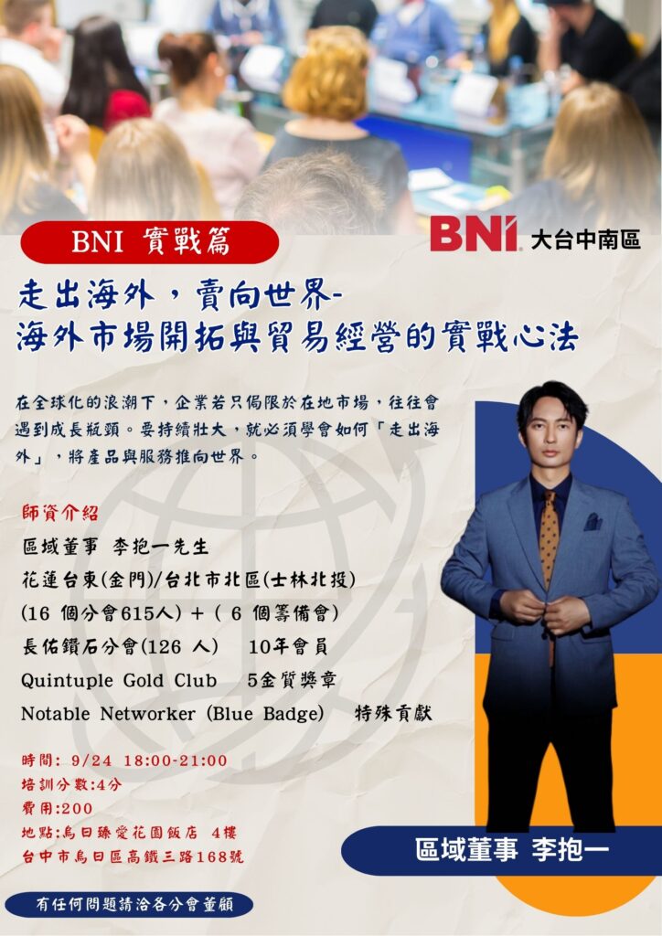 📣【BNI大台中南區 實戰篇特別課程】