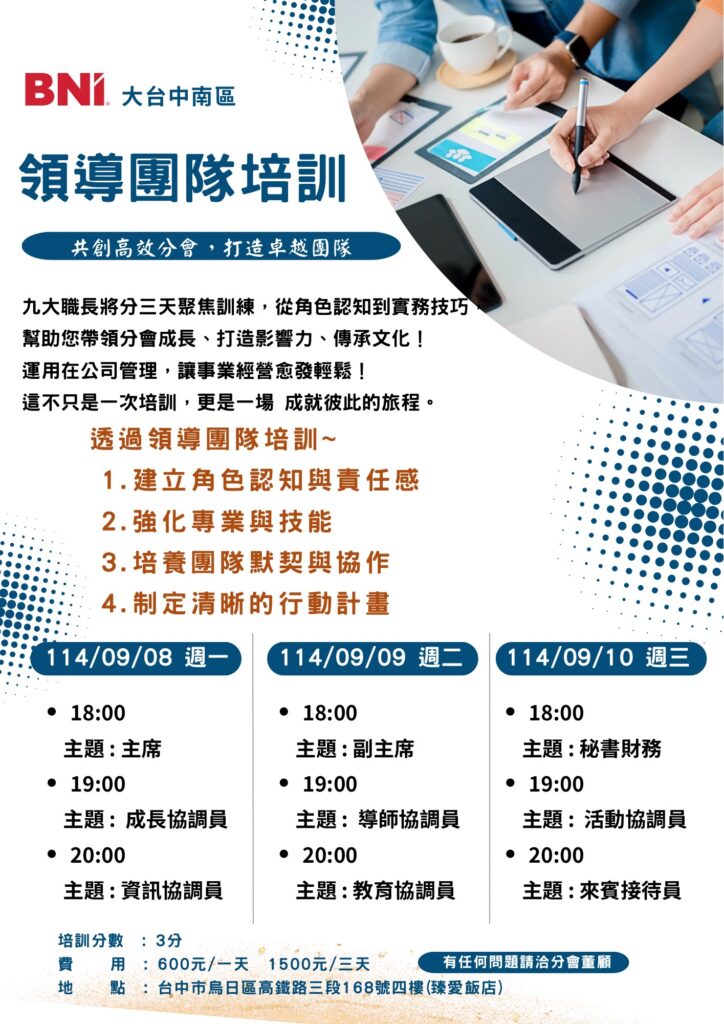 📣 BNI大台中南區|導師養成計劃正式啟動!