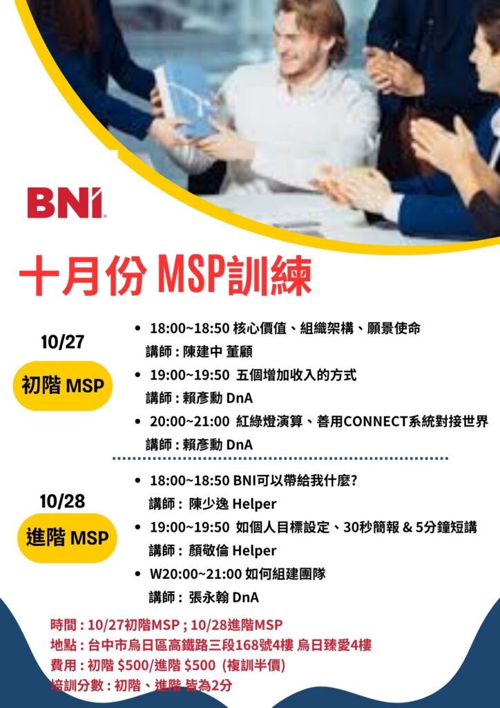 📣【10月 MSP培訓 開始報名囉!】